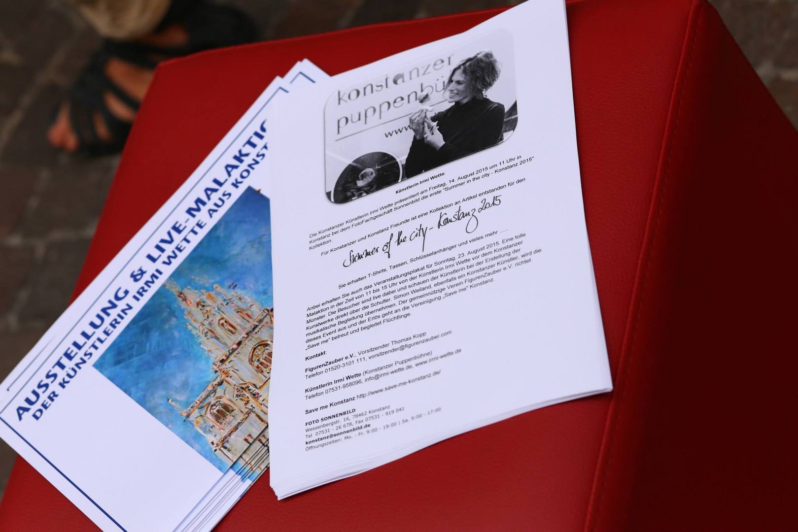 Bis 15. September 2015 läuft im Konstanzer Fotogeschäft Sonnenbild die Ausstellung Summer of the City – Konstanz 2015. Verschiedene von Irmi Wette gestaltete Bilder und Gegenstände werden zugunsten der lokalen Flüchtlingsarbeit verkauft. 50 Prozent der Erlöse gehen an Save-me Konstanz.